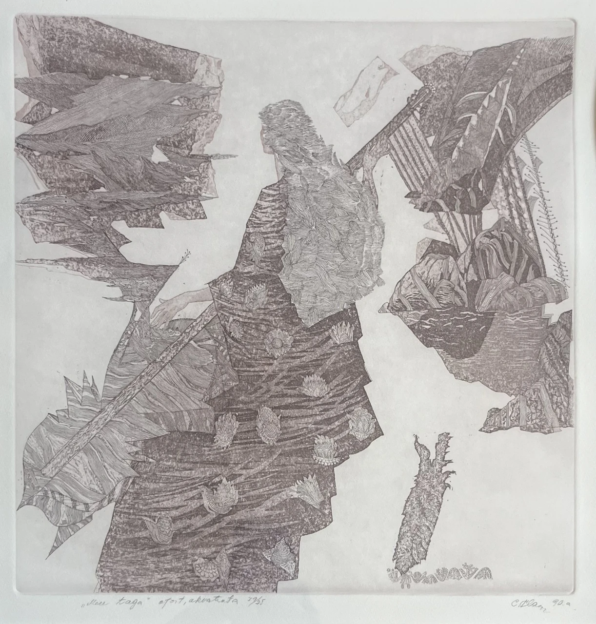 Ofort, akvatinta 1990, signeeritud, nummerdatud, raamitud. Ava mõõdud 35 x 35,5 cm, raami mõõdud 48 x 57 cm.