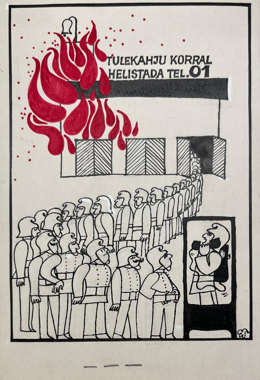 Tuššijoonistus, lehe mõõdud 11,5 x 17 cm, raamimata.