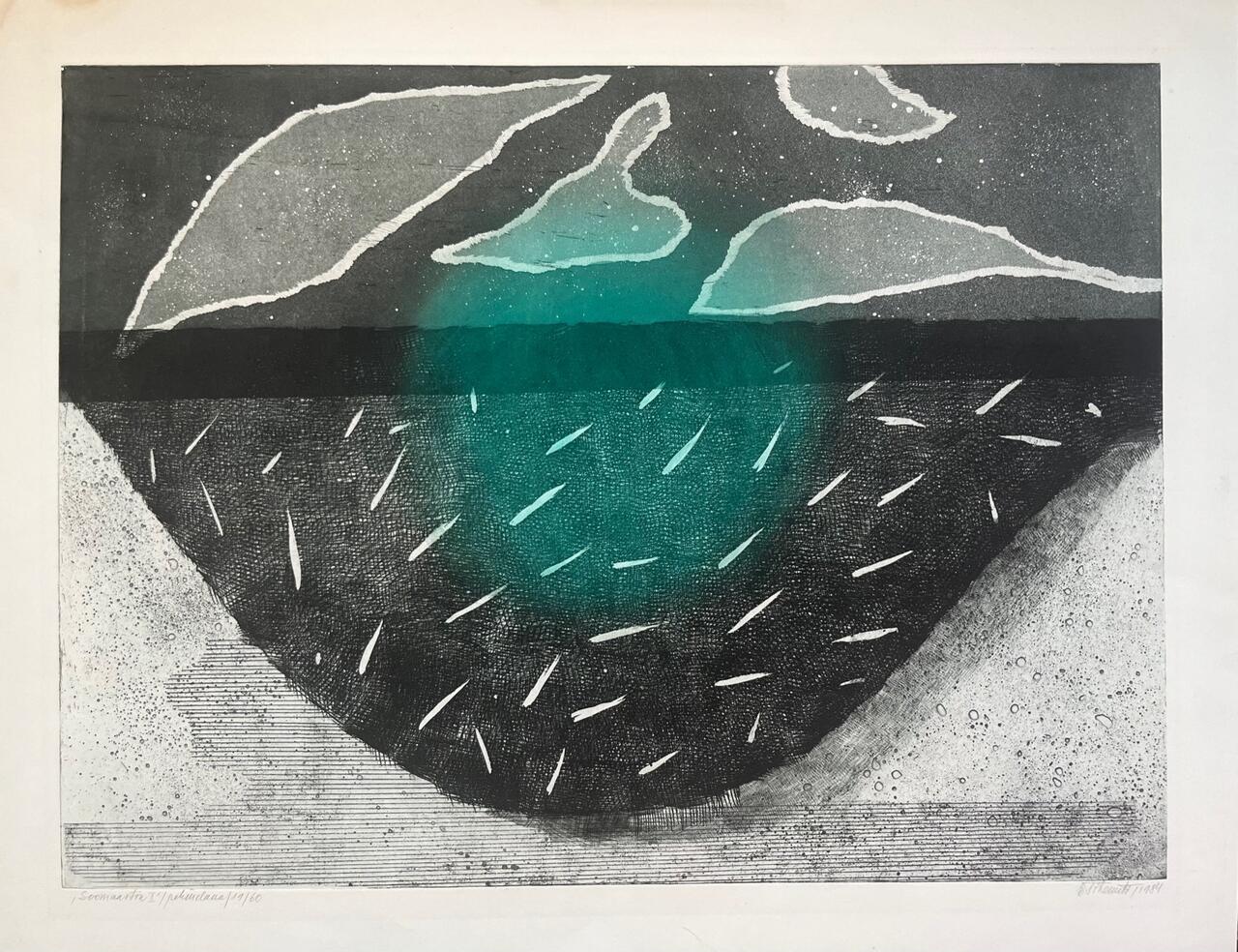 Pehmelakk 1984, 19/60. Kujutise mõõdud 64 x 49 cm, raamitud.