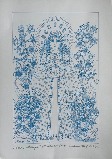 Siiditrükk 2022, 5/55, raamimata. Kujutise mõõdud 16 x 24 cm.