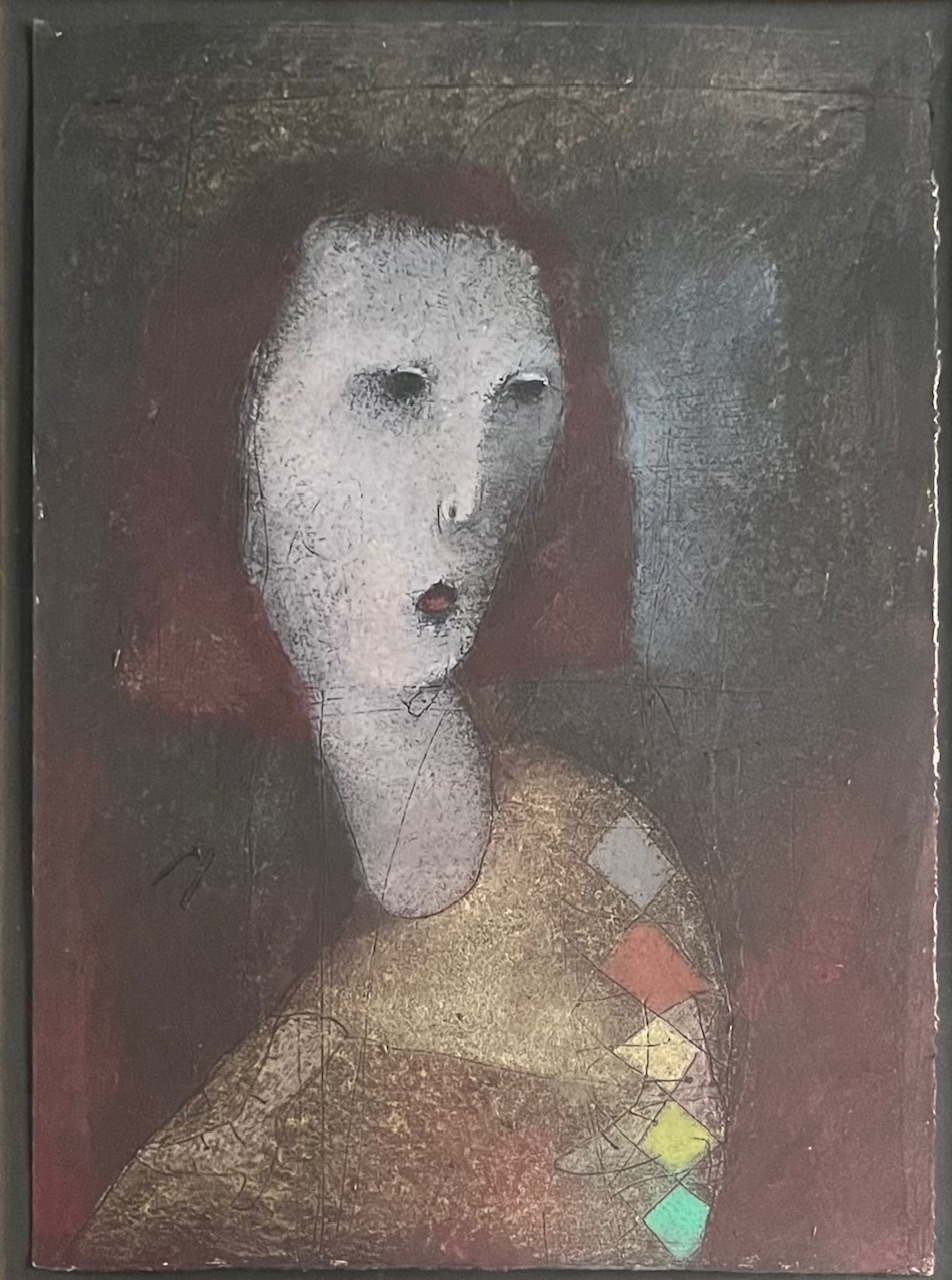 Segatehnika, signeerimata, raamitud. Töö mõõdud 25 x 35 cm.
