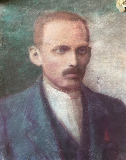 Pastell 1945, signeeritud, raamimata. Töö on rulli keeratuna.