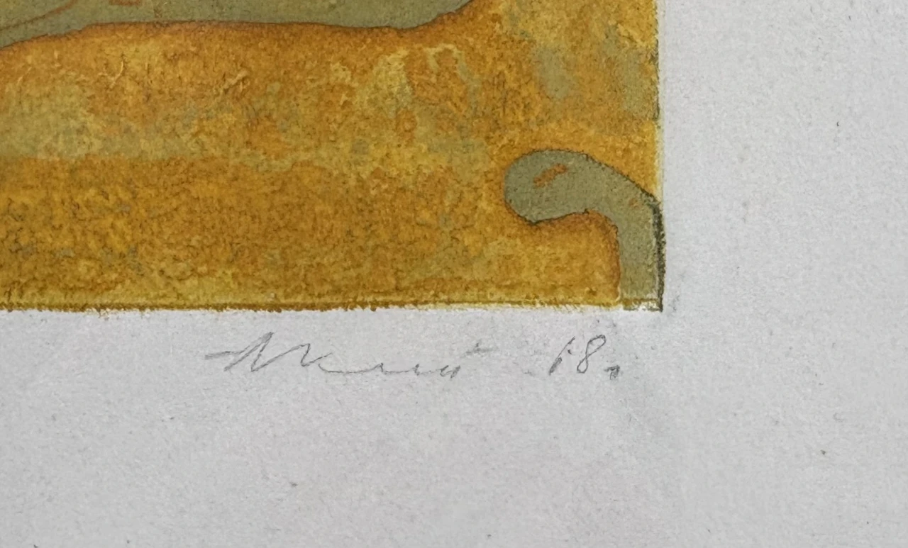 Söövitus 1968, signeeritud, nummerdatud 15/25, raamitud. Pildi mõõdud 39 x 39 cm, raami mõõdud 55 x 53 cm.