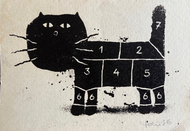 Siiditrükk 1986, signeeritud, raamimata. Mõõdud 14 x 10 cm.