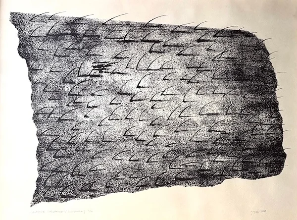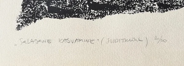 Siiditrükk 1988, signeeritud, nummerdatud, originaalraamiga. Kujutise mõõdud 76 x 58,5 cm, raami mõõdud 98 x 72 cm.