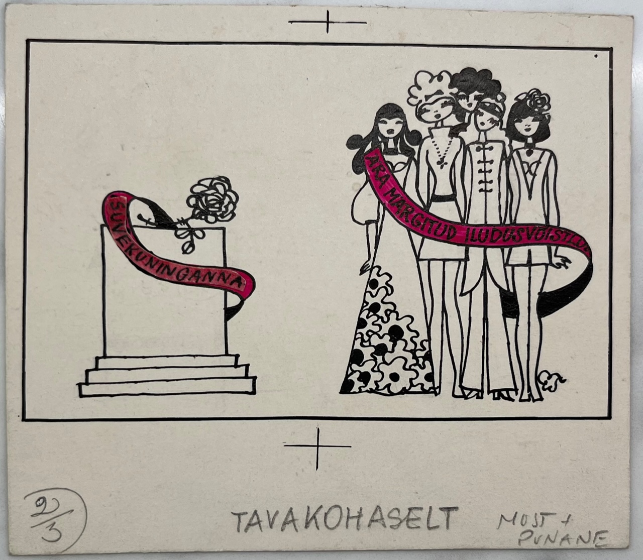 Tuššijoonistus 1971, lehe mõõdud 12 x 10,5 cm.