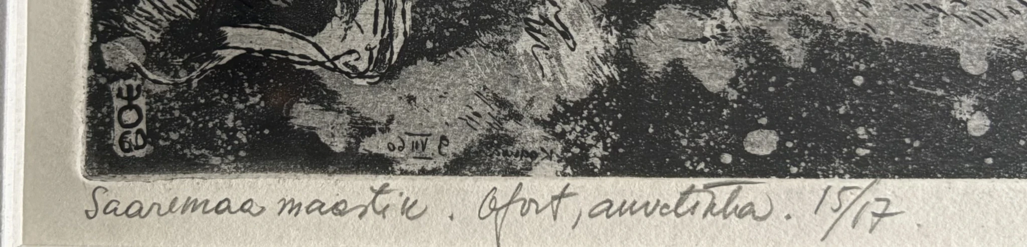 Ofort, akvatinta 1960, signeeritud, nummerdatud 15/17, raamitud. Ava mõõdud 26 x 64 cm, raami mõõdud 36 x 75 cm.