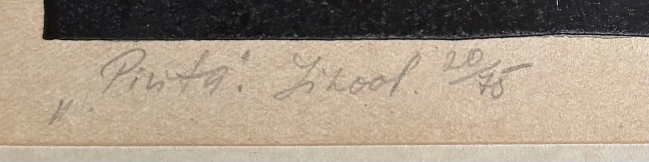 Linool 1966, signeeritud, nummerdatud, origiaalraamiga. Ava mõõdud 29 x 39 cm, raami mõõdud 47 x 59 cm.