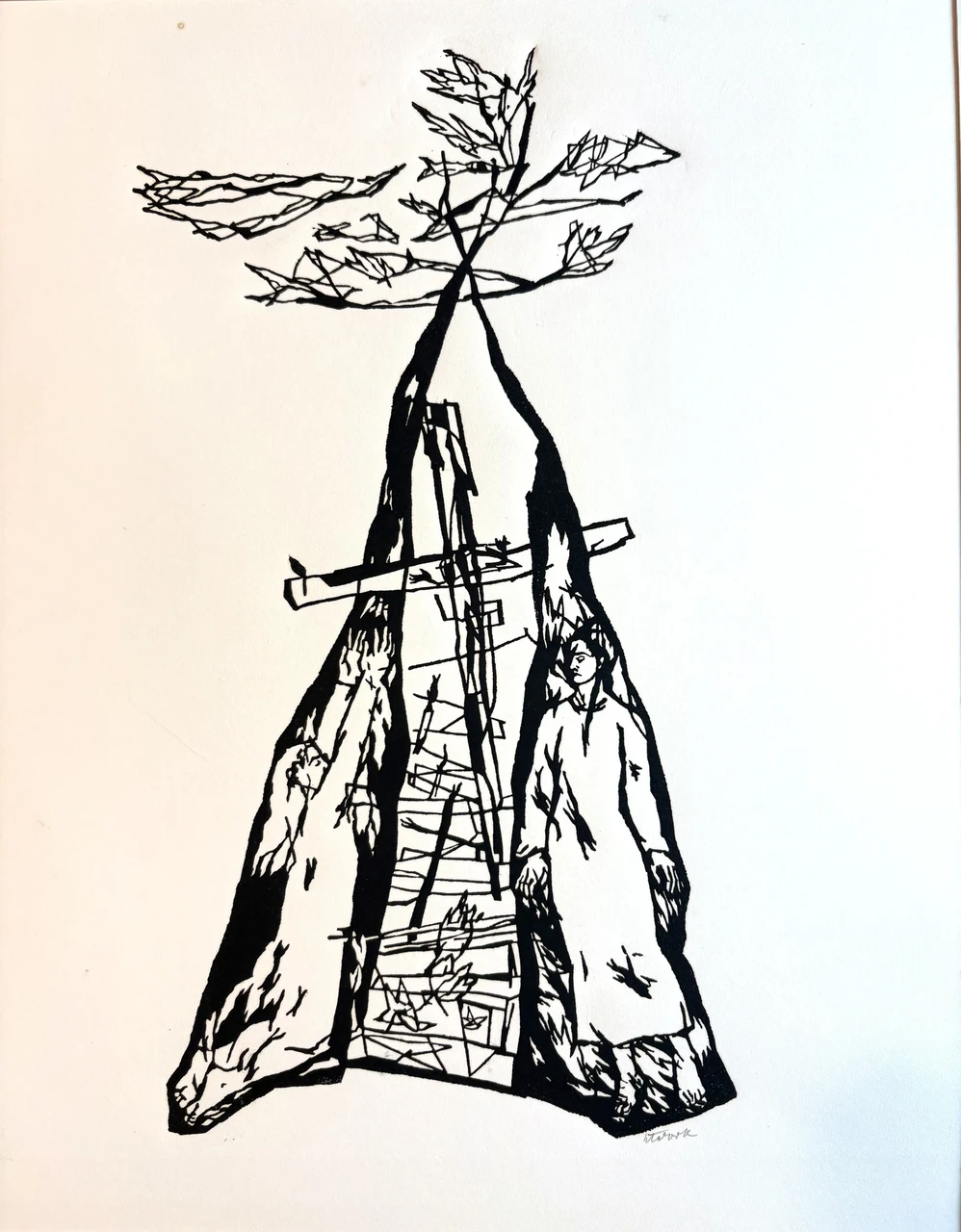 Linoollõige 1948, signeeritud, raamimata, paspartuuga. Lehe mõõdud 49 x 65 cm, kujutise mõõdud 30 x 44 cm.