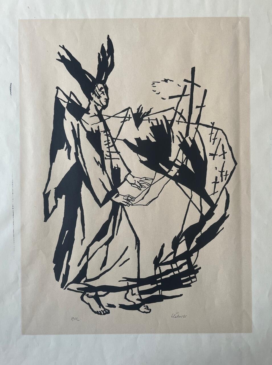 Linoollõige aastast 1952. Kujutise mõõdud 28 x 38 cm, raamimata, kergelt kolletunud.