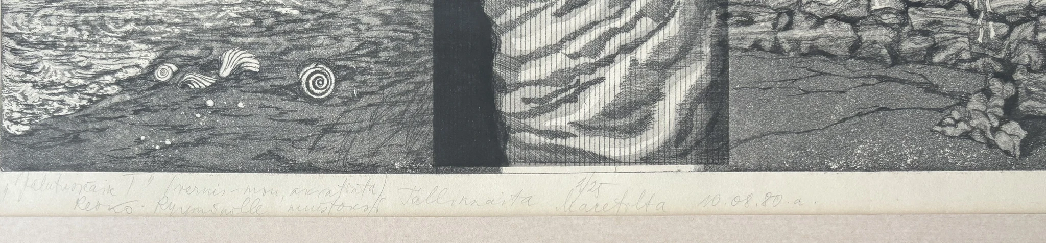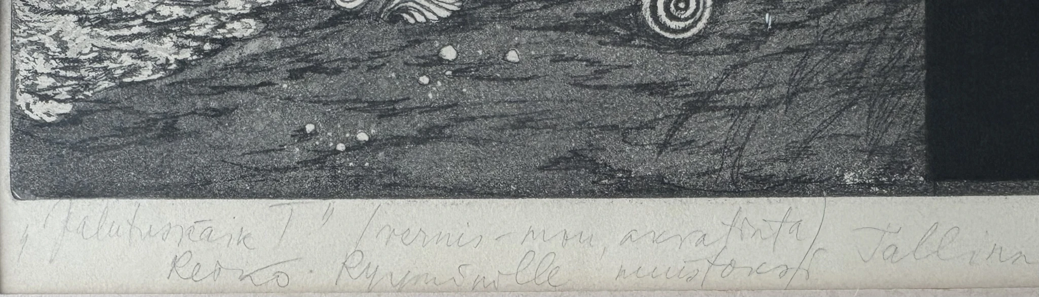 Vernis-mou, akvatinta 1980, signeeritud, nummerdatud 2/25, raamitud. Ava mõõdud 52 x 38 cm, raami mõõdud 70 x 60 cm.