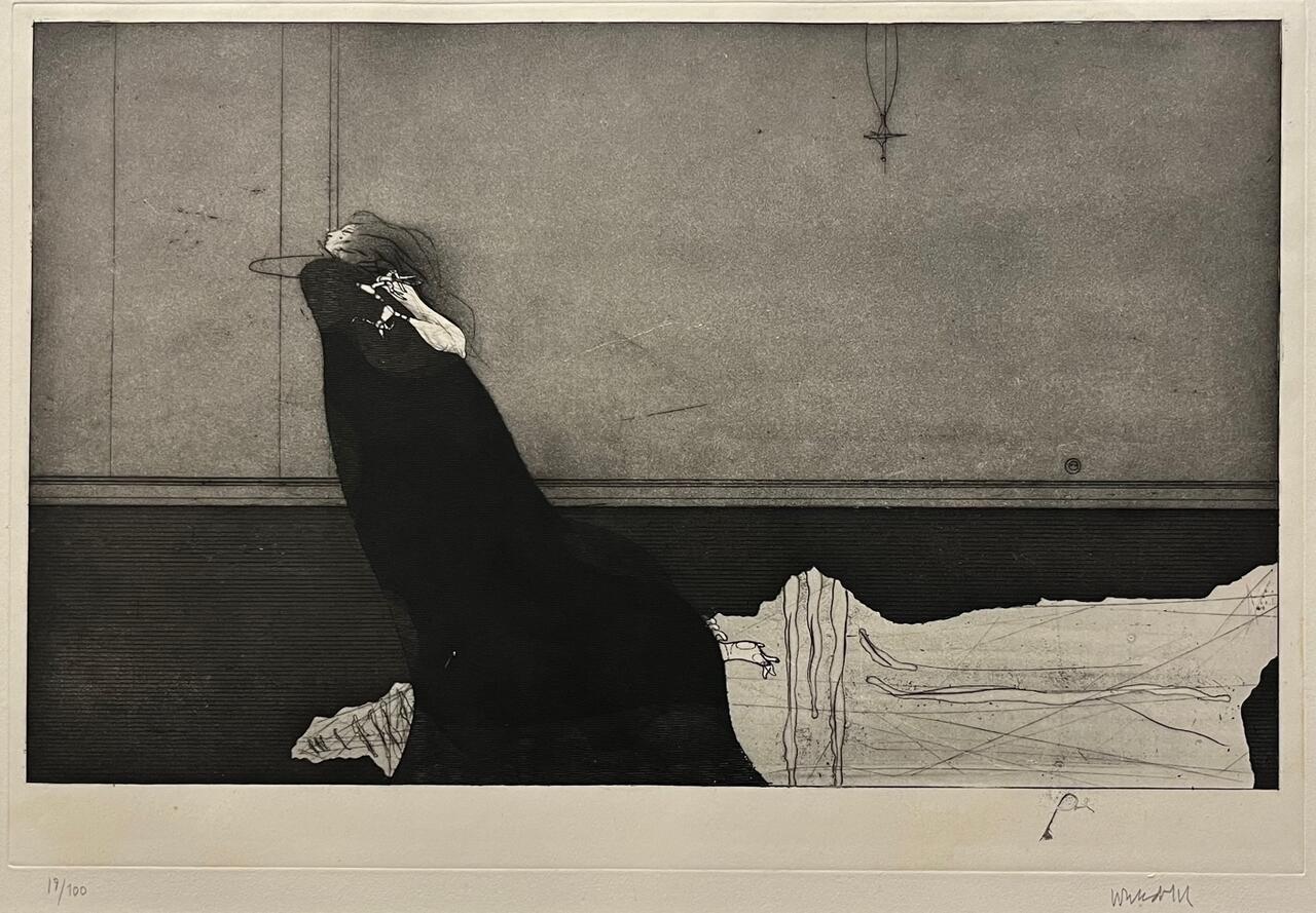 Ofort "Naine toolil" 1968, nummerdatud, signeeritud, raamitud. Kujutise mõõdud 57 x 35 cm.