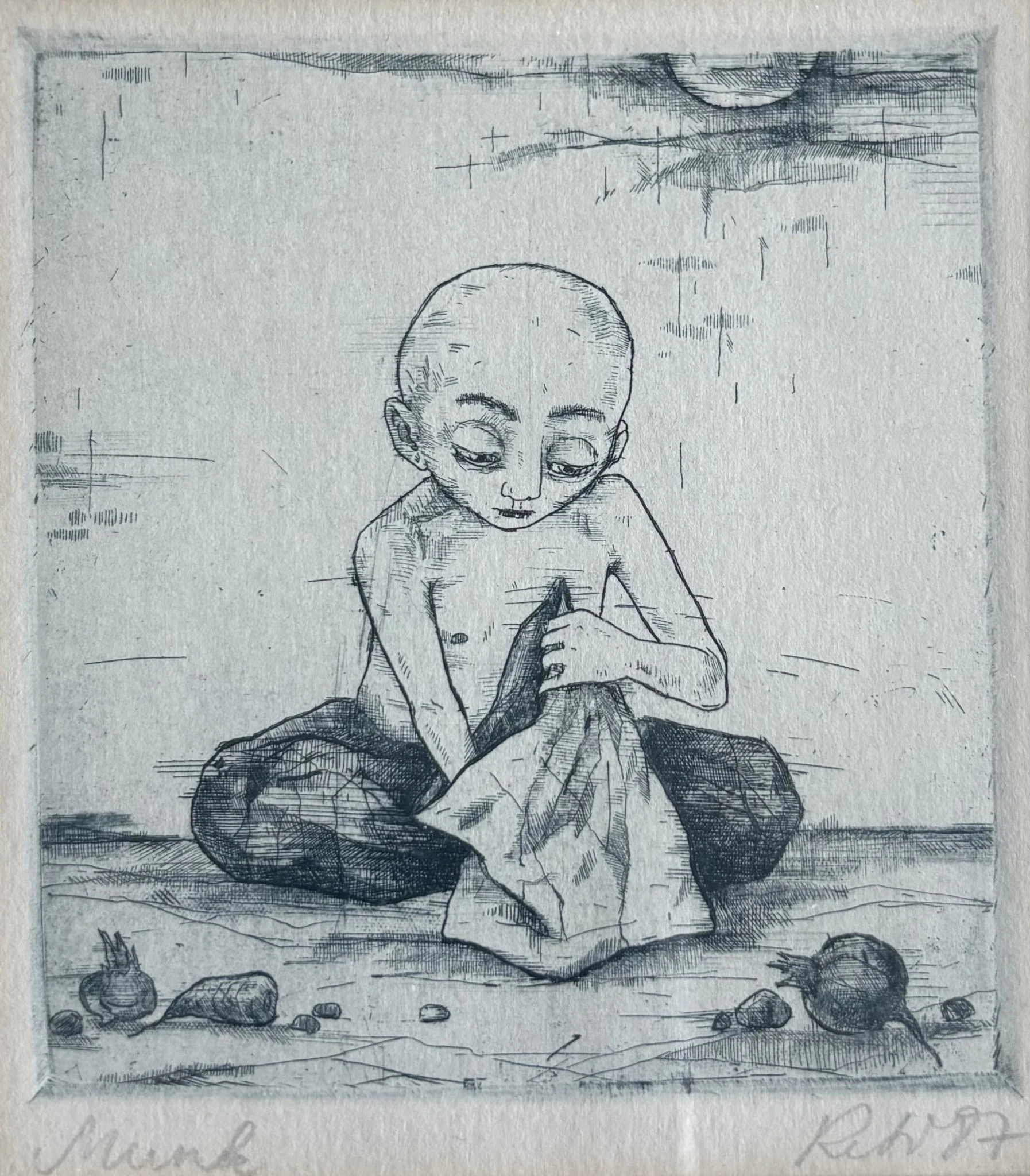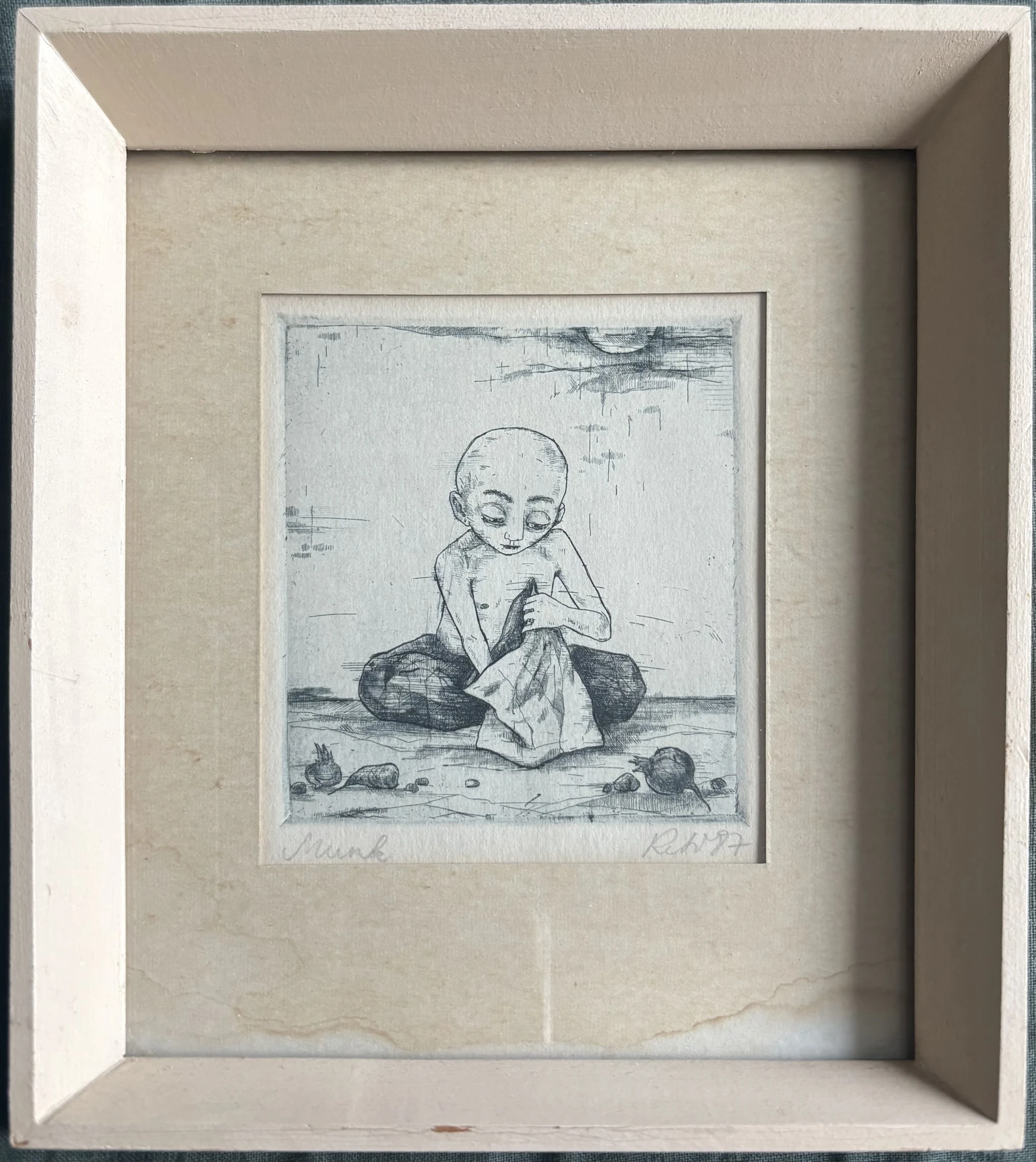 Ofort 1987, signeeritud, originaalraamiga. Ava mõõdud 8,5 x 9,5 cm. Raami mõõdud 16 x 18 cm.
