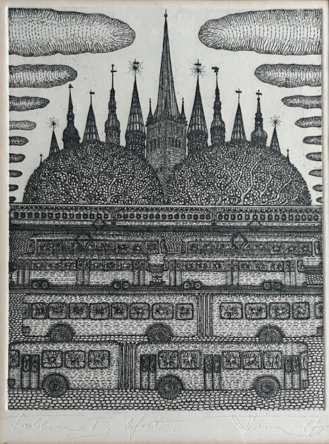 Ofort 1977, signeeritud, originaalraamis. Ava mõõdud 18 x 24 cm.