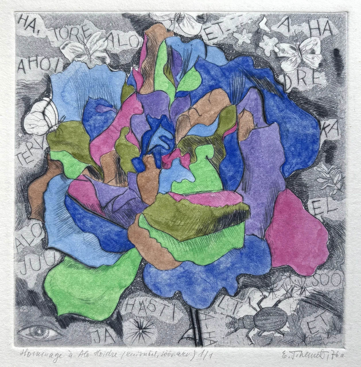 Kuivnõel, söövitus, akvatinta 1974, nummerdatud 1/1, signeeritud, raamimata. Lehe mõõdud 18 x 23,5 cm, kujutise mõõdud 13,3 x 13,5 cm.