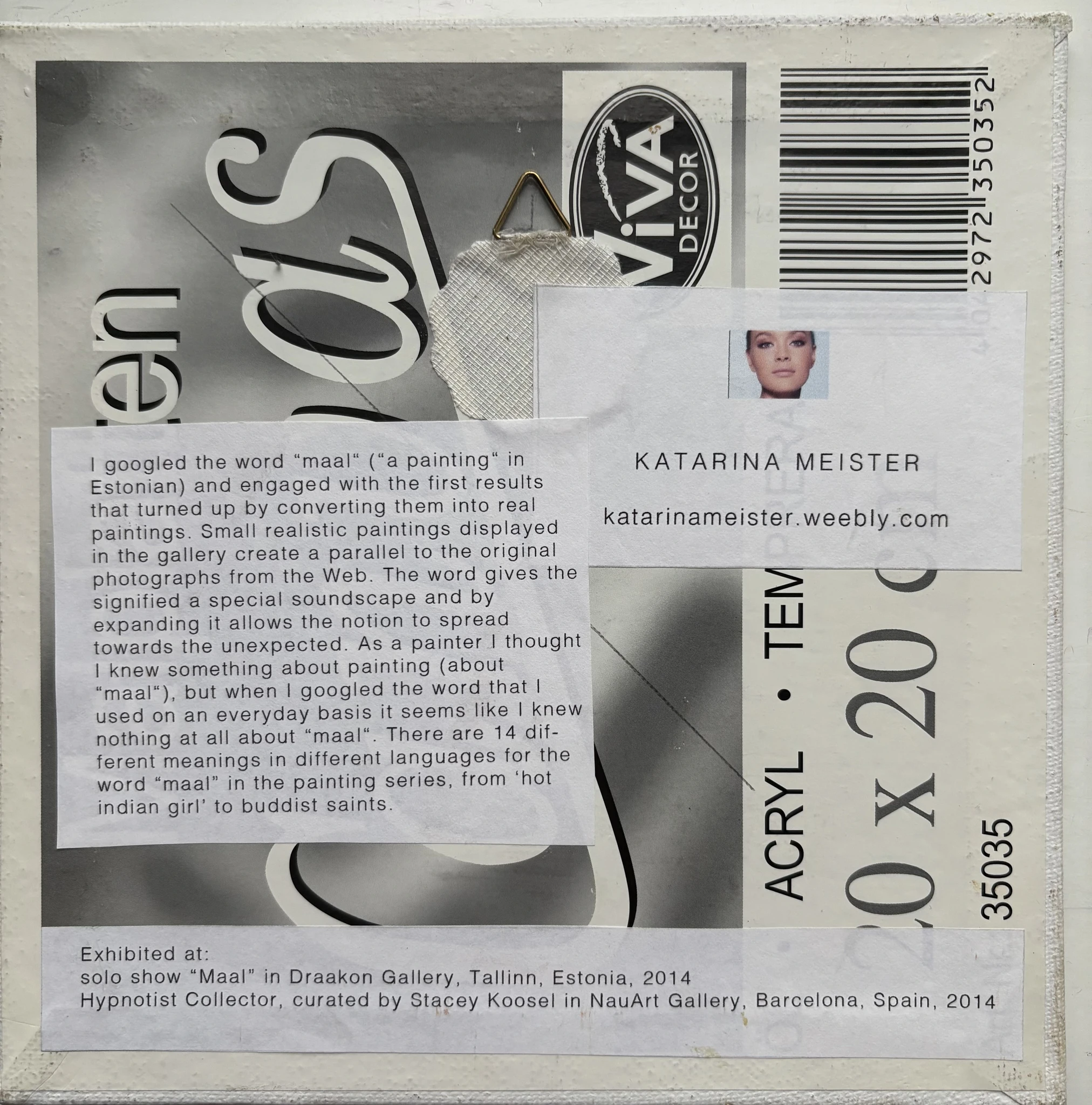 Õli/ akrüül papile liimitud lõuendil 2014. Raamimata töö mõõdud 20 x 20 cm.
