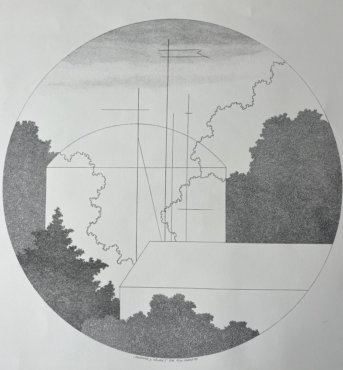 Litograafia 1989, nummerdatud 17/70, signeeritud, raamimata. Kujutise läbimõõt 47 cm, lehe mõõdud 62 x 68 cm.