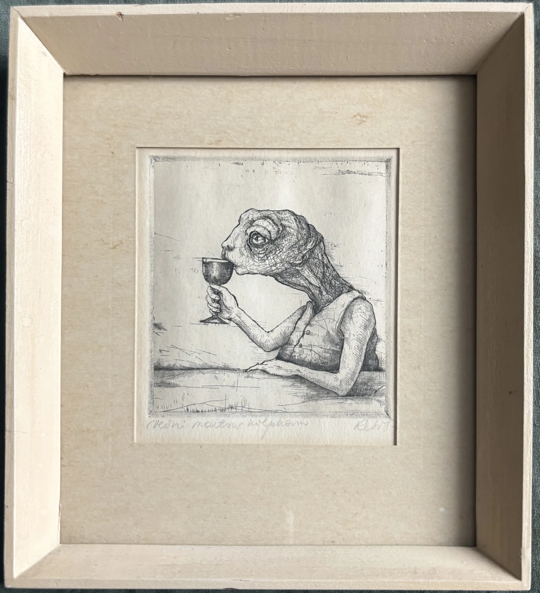 Ofort 1987, signeeritud, originaalraamiga. Ava mõõdud 8,5 x 9,5 cm, raami mõõdud 16 x 18 cm.