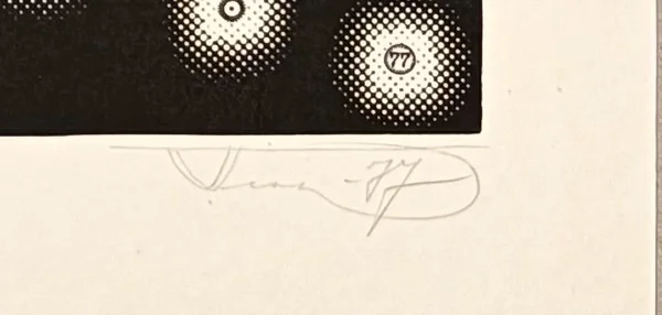 Söövitus 1977, signeeritud, nummerdatud, raamimata. Kujutise mõõdud 47 x 48 cm, lehe mõõdud 55 x 62. Töö oli 2020. aastal KUMUs toimunud näituse "Vello Vinn. Vastupeegeldused" tunnustöö.